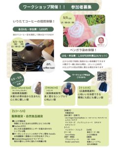 年に2回、オーガニック素材の衣服や服飾雑貨などを全国から取り寄せて、展示会販売されています。